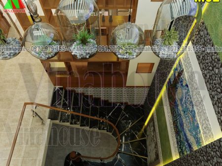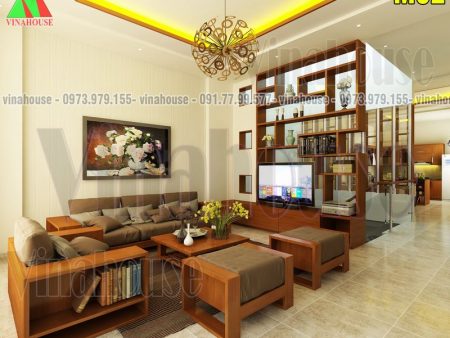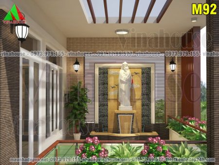 Các không gian bên trong biệt thự 2 tầng được bố trí thuận tiện cho công việc kinh doanh cũng như không gian riêng tư sinh hoạt của gia đình vẫn không bị ảnh hưởng, đồng thời cũng được bố trí theo phong thủy xây nhà mang lại sự an tâm cho gia đình.