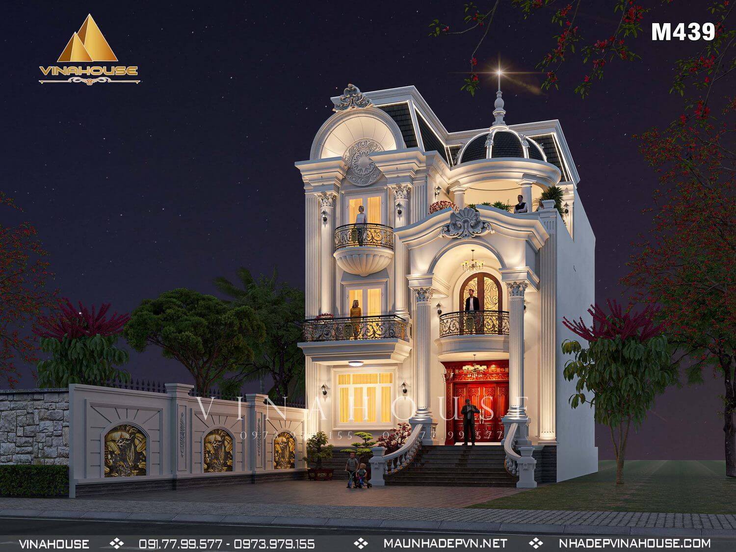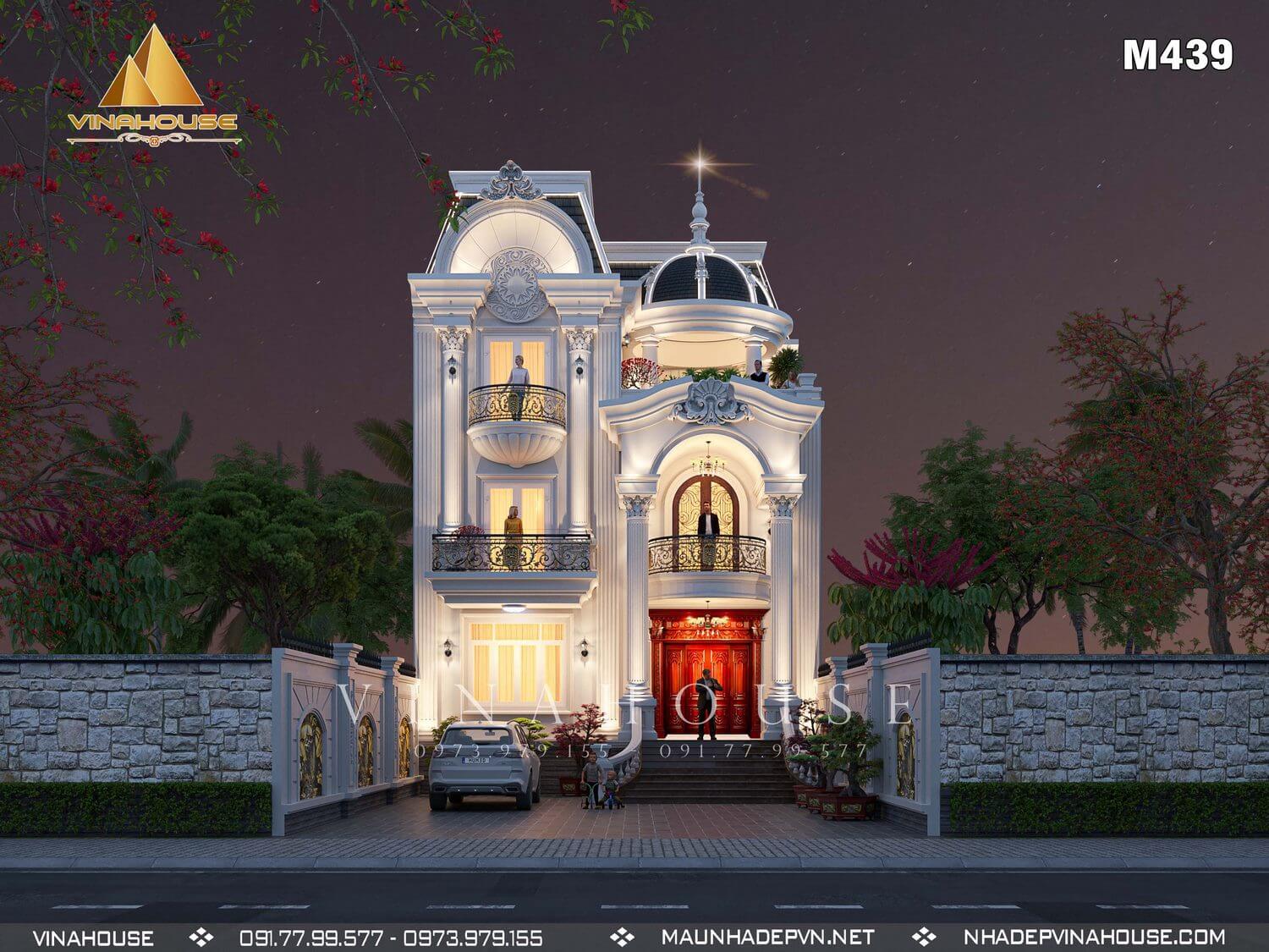Bản vẽ thiết kế biệt thự tân cổ điển 3 tầng 1 tum đẳng cấp ở Bình Dương M439