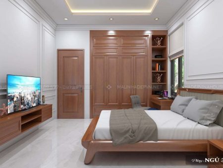 Nội thất các phòng ngủ được thiết kế thống nhất với nhau, không quá nhiều nội thất để tạo nên không gian nghỉ ngơi, thư giãn tốt nhất. Tuy nhiên không thể thiếu những món đồ nội thất như: giường ngủ, tủ quần áo, kệ tivi, bàn trang điểm hoặc bàn làm việc…