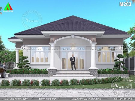 Thiết kế biệt thự vườn 1 tầng mái thái tân cổ điển 3 phòng ngủ ở Đồng Nai M232