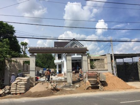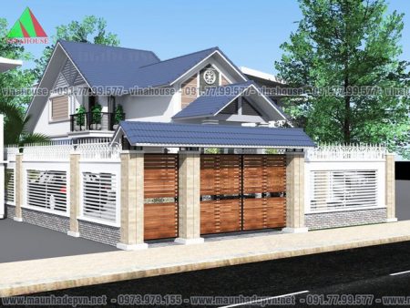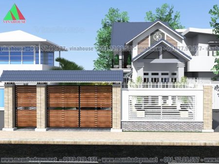 Mặt tiền cổng chính và hàng rào biệt thự cấp 4 có gác lửng