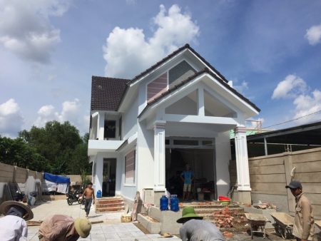 Biệt thự đẹp cấp 4 được xây dựng trên nền đất cứng hệ thống móng đơn và kết cấu khung bê tông sắt thép chịu lực, sàn tầng lửng đúc bê tông cốt thép cố định chứ không phải đúc giả như các nhà cấp 4 giá rẻ trên các trang mạng khác. Nền cao hơn 80cm so với mặt sân vườn, mái thái viền đúc bê tông và xà gỗ sắt kẽm chống gỉ lợp ngói thái