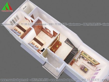 Bản vẽ 3D mặt bằng bố trí tầng lửng 5×16,5