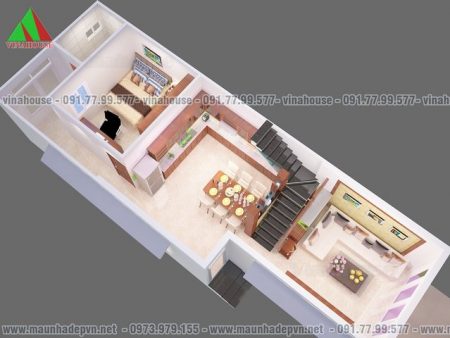 Bản vẽ 3D mặt bằng tầng trệt 5×16,5