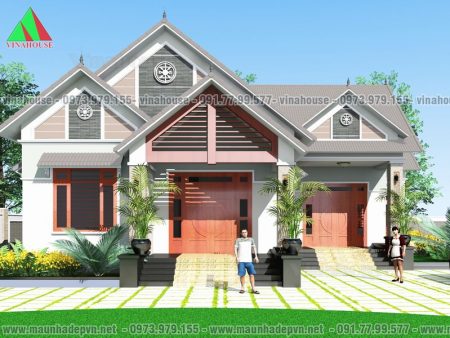 Thiết kế biệt thự vườn mái thái đẹp 1 tầng
