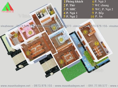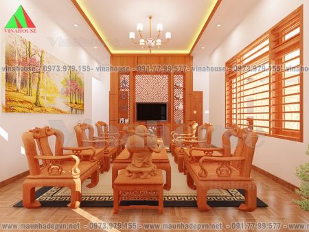 Sau đây là một số hình ảnh 3D mô tả cách bố trí nội thất cho biệt thự trệt 220m2 này.