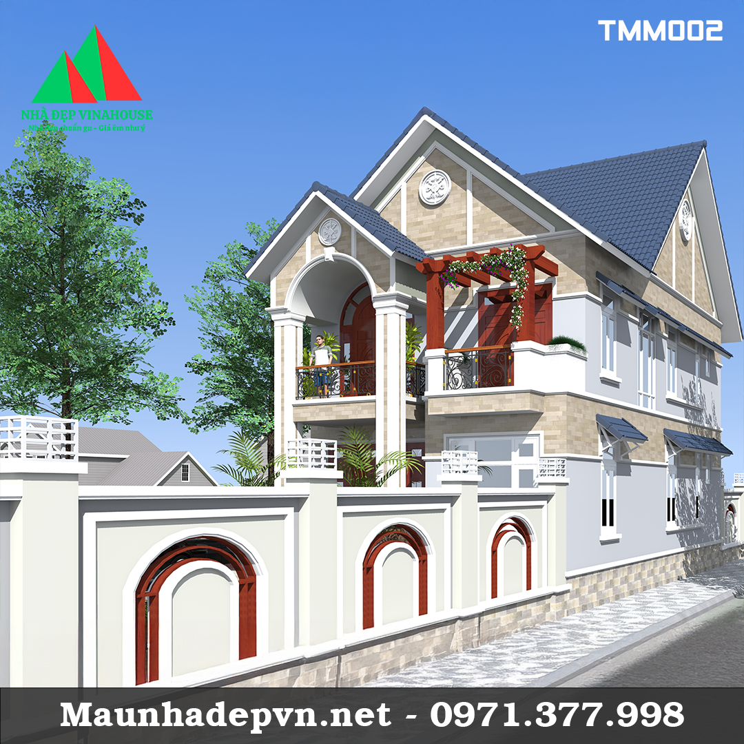 Mẫu nhà 2 tầng mái Thái TMM002 là một trong những thiết kế nổi bật được nhiều gia đình yêu thích tại Nhà Đẹp Vinahouse. Với phong cách kiến trúc hiện đại pha chút cổ điển tinh tế, ngôi nhà toát lên vẻ sang trọng, bề thế nhưng vẫn gần gũi và thoáng mát.