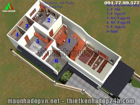 Mẫu nhà cấp 4 1 trệt 1 lửng mái thái lợp ngói đẳng cấp 8×18 sau đây được các kts Vinahouse thiết kế cho anh Thuận ở Cẩm Giang – Hải Dương trên diện tích khu đất 250m2 mặt tiền 7.5m sâu 33m . Khác với những mẫu nhà cấp 4 có gác lửng chúng tôi đã giới thiệu trước đây. Thì hôm nay là một dạng nhà cấp 4 có gác lửng kiểu mới với diện tích lớn hơn và mang kiến trúc đẳng cấp như một ngôi biệt thự vườn hạng sang khá mới mẻ tính cho tới thời điểm hiện nay.