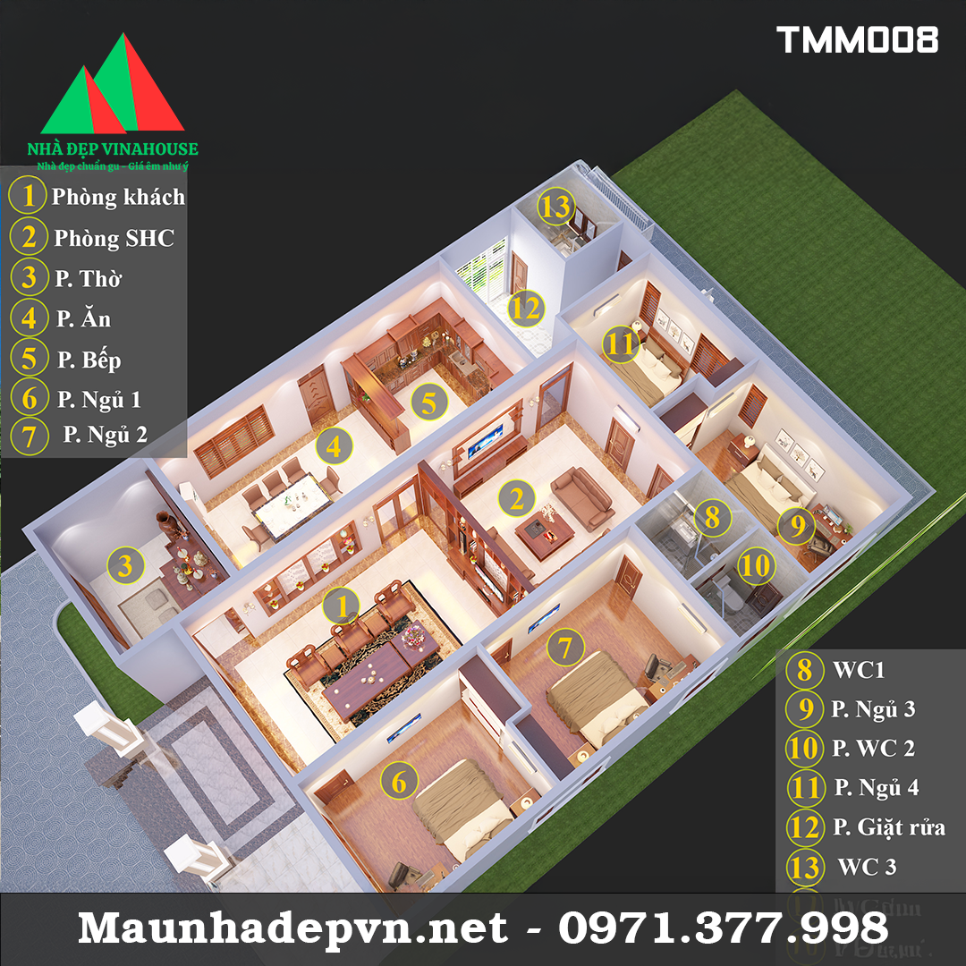 Sự hợp lý trong công năng là điểm nổi bật nhất của mẫu TMM008, đảm bảo các không gian đều thông thoáng, tiện dụng và kết nối hài hòa.