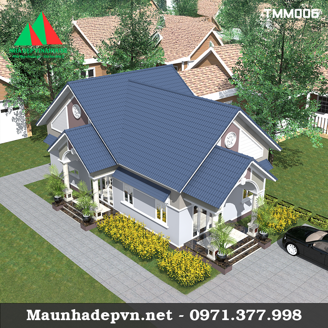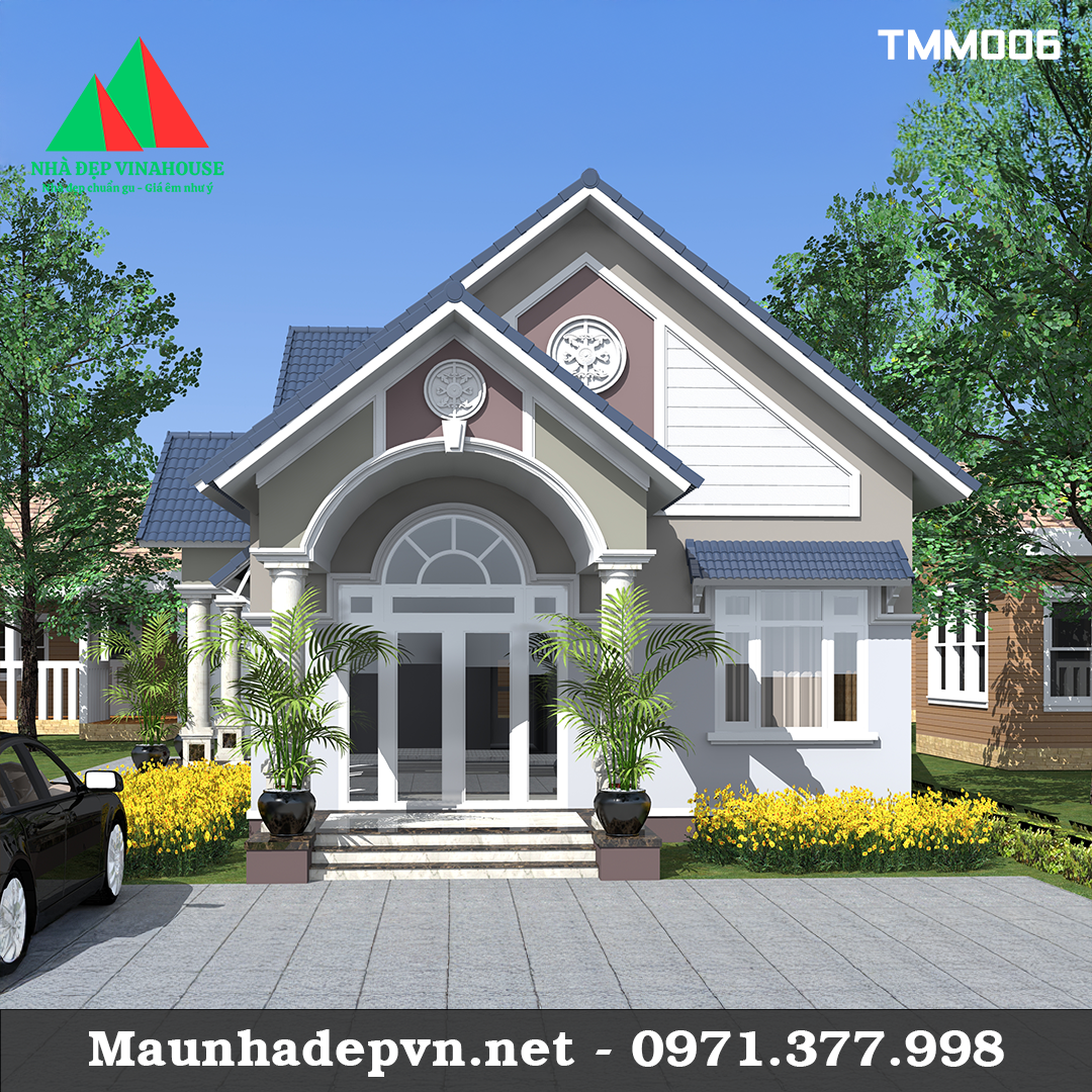 Mẫu TMM006 được thiết kế theo phong cách hiện đại pha chút cổ điển, nổi bật với mái Thái giật cấp duyên dáng, hệ cửa kính lớn lấy sáng tự nhiên và bố cục mặt bằng thông minh.