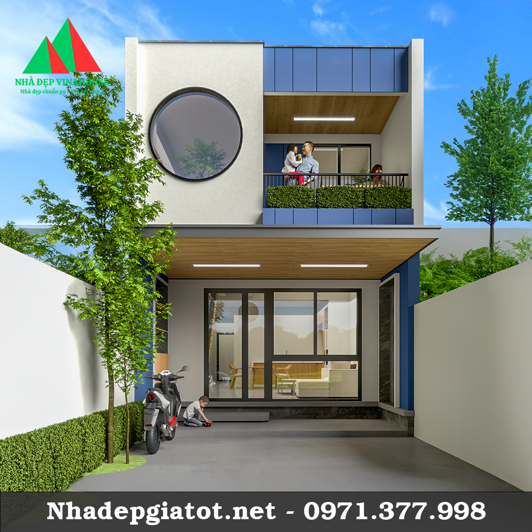 Điểm nhấn hình tròn: Ô cửa tròn lớn tại mặt tiền tạo hiệu ứng thị giác lạ mắt, tăng điểm nhấn thẩm mỹ và biểu tượng cho sự viên mãn, hài hòa trong phong thủy.