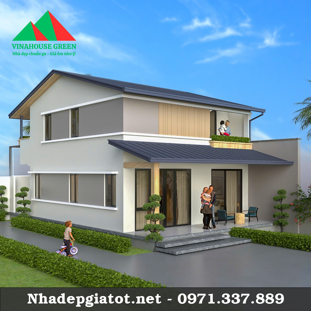 - Mái lệch cách nhiệt: Thiết kế mái đổ chéo không chỉ tạo điểm nhấn thẩm mỹ mà còn đảm bảo thoát nước nhanh, không lo thấm dột.