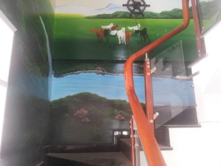 Mẫu nhà 1 trệt 1 lầu này được thiết kế gara không gian mở với 1 lối đi rộng 2m ra vườn phía sau. Vừa là chức năng lấy sáng vừa làm hành lang là phương án được khá nhiều các nhà phố hiện nay sử dụng. Và đặc biệt ý đồ của chị mai là trừ 2m để sau này chị sẽ làm thang máy cho người già và người tàn tật đi lại thuận tiện. Trước sân bố trí hồ cá tiểu cảnh và hòn non bộ bố trí sát với sảnh chính để giải trí thư giãn đầu óc mỗi tối sau 1 ngày làm việc.