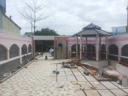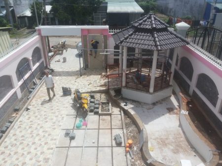 Thi công chòi bể cá hòn non bộ và lát gạch sân vườn