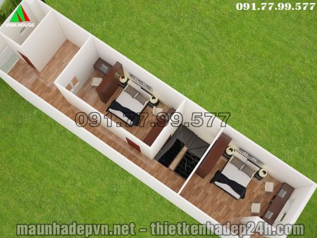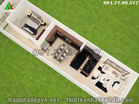 Bản vẽ 3D Mặt bằng tầng lầu nhà phố 2 tầng