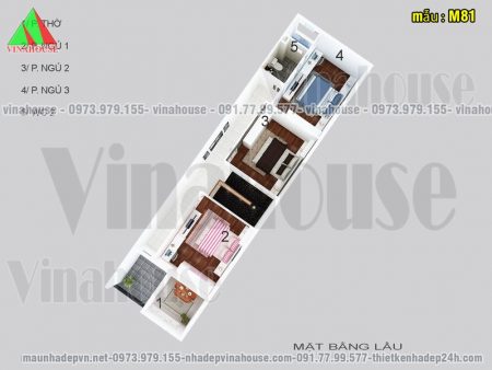 Bố trí nhà 2 tầng 5×17 để có 4 phòng ngủ và có luông phòng thờ