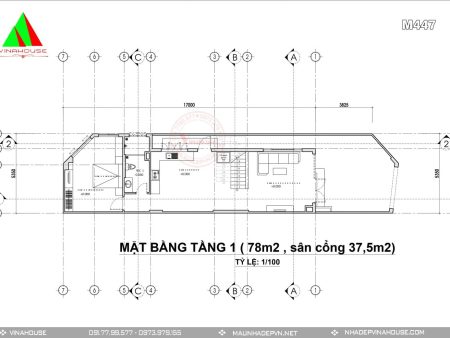 - Diện tích khu đất: 5×22 – diện tích xây dựng: 5×17