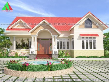Mẫu biệt thự vườn mái thái 1 tầng 15×16 đẹp 3 phòng ngủ ở Mỹ Tho M48